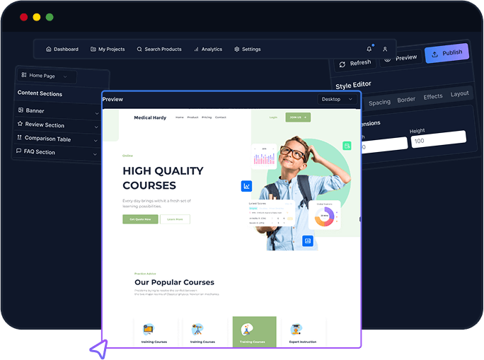 Maintain complete creative control with our intuitive editor. Easily modify any element of your affiliate sites from layouts to content, allowing you to add your personal touch while still leveraging the power of our AI-generated foundation.